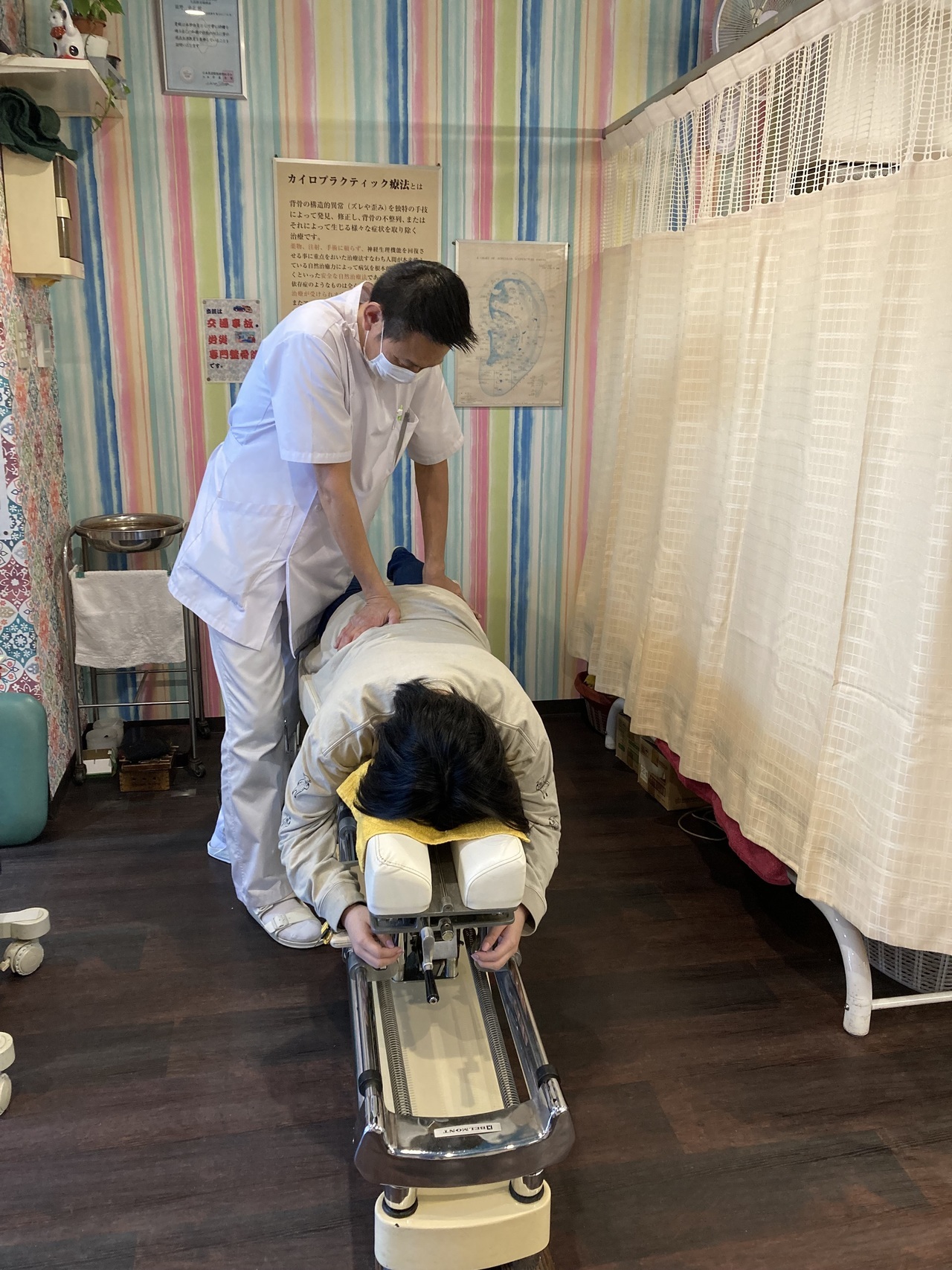 治療所に着くと受付の方やスタッフが痛みが出ないように上手に介助して頂き、先生も治療しながら状態の説明と今後の治療メニューとどれくらいで良くなるのかなど、丁寧に教えてくれて安心したのと痛みも楽になり帰ることができました。